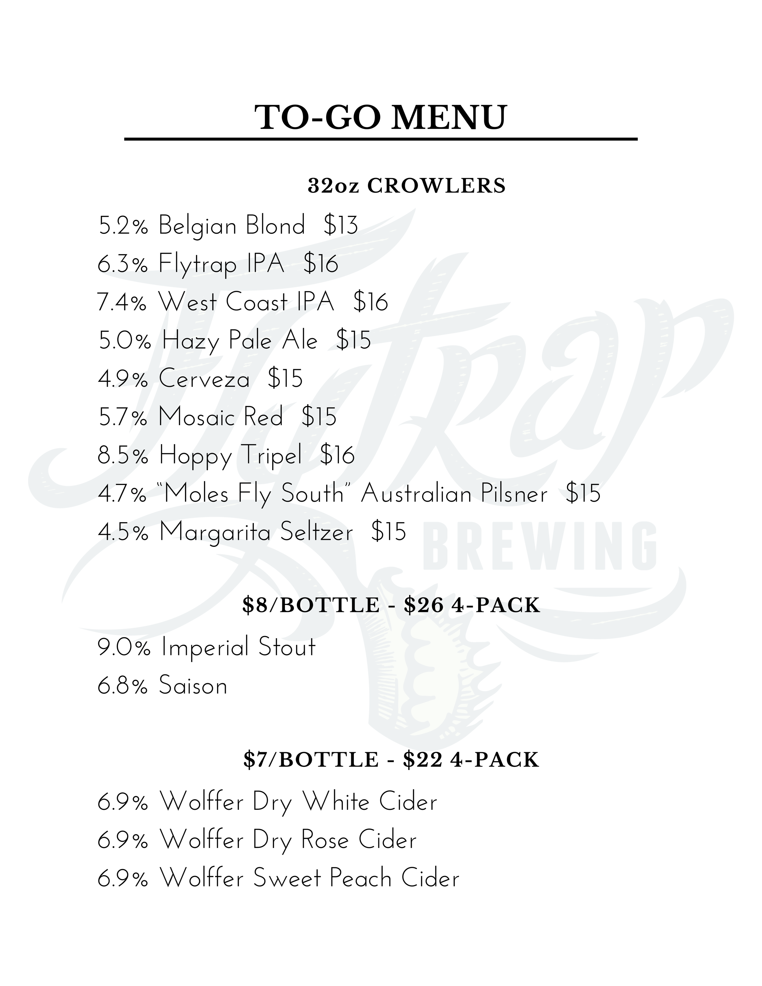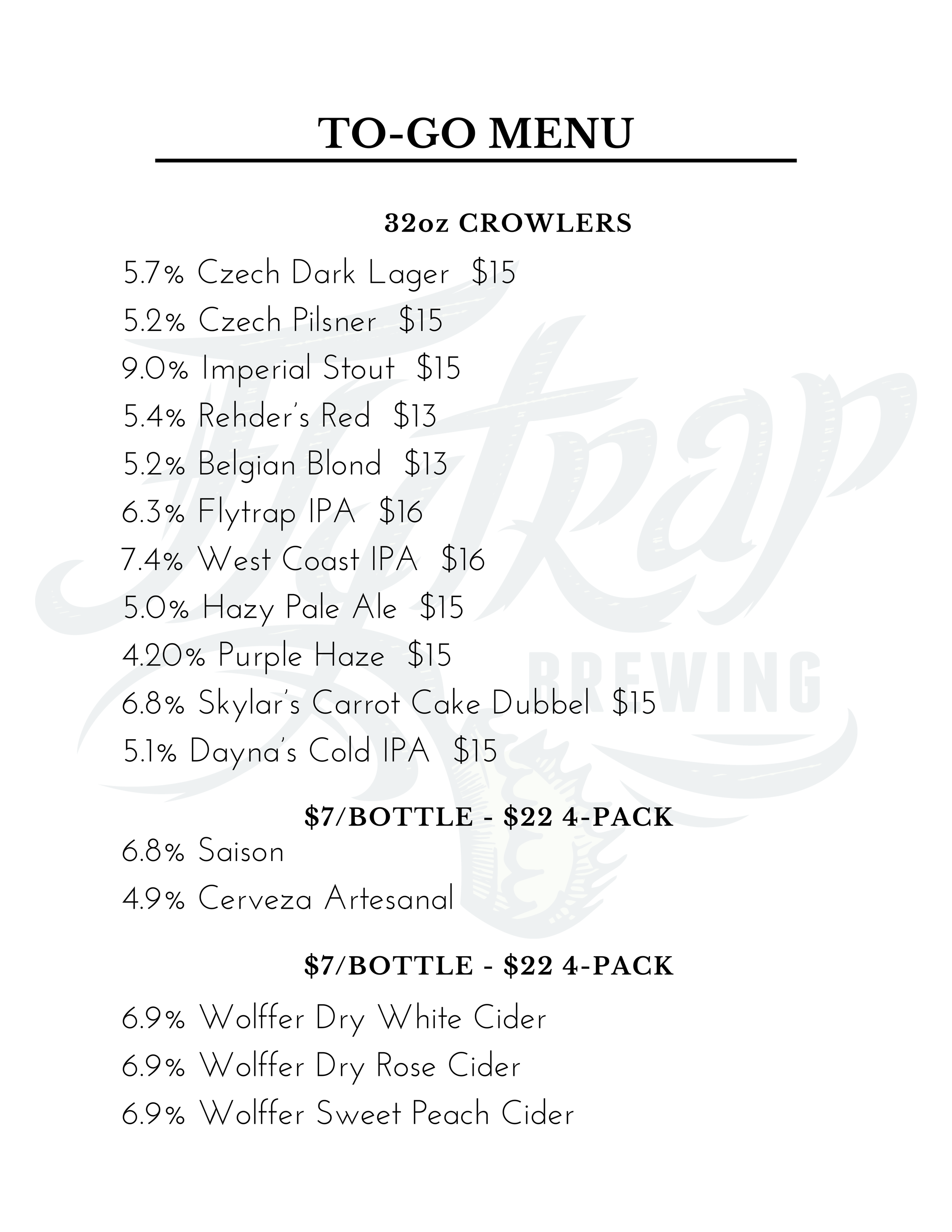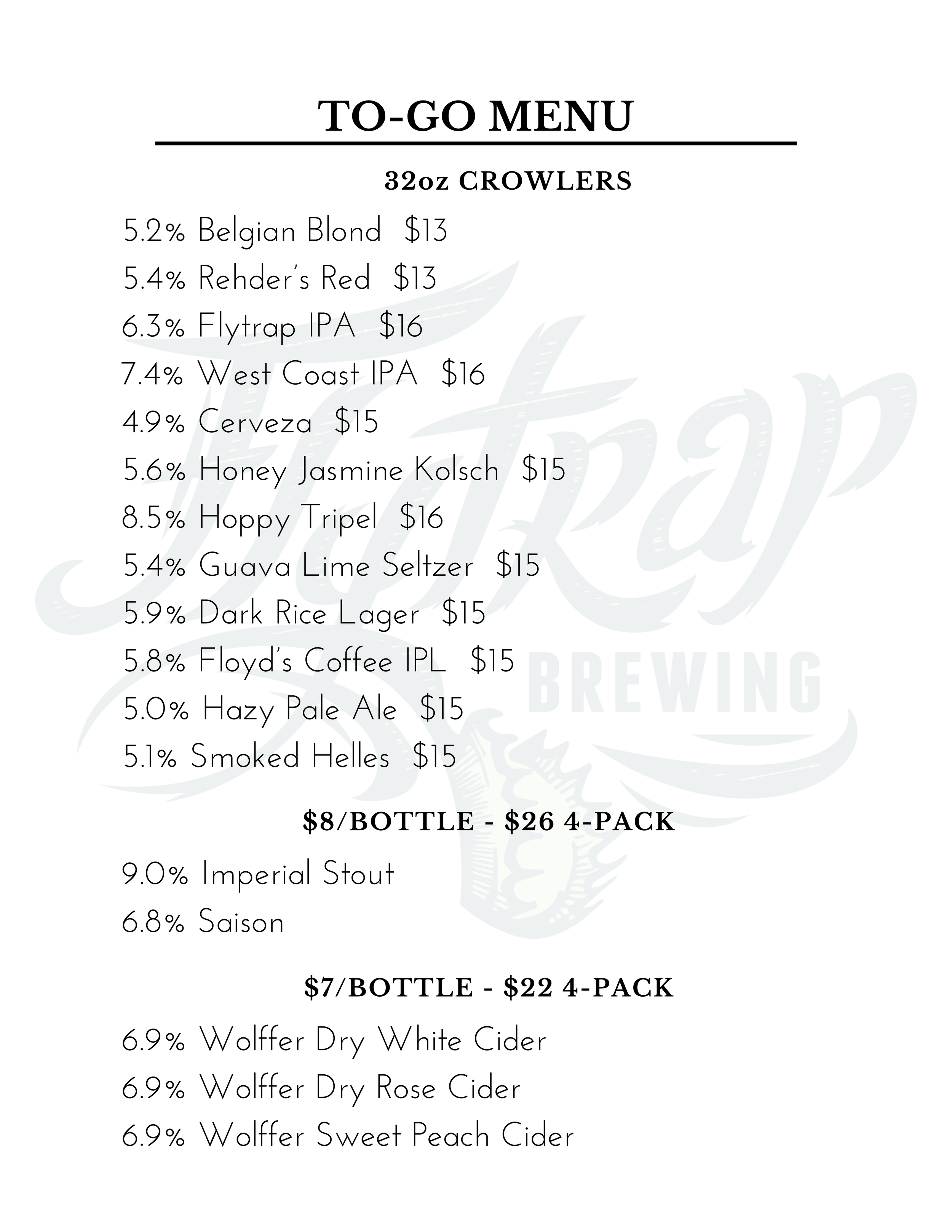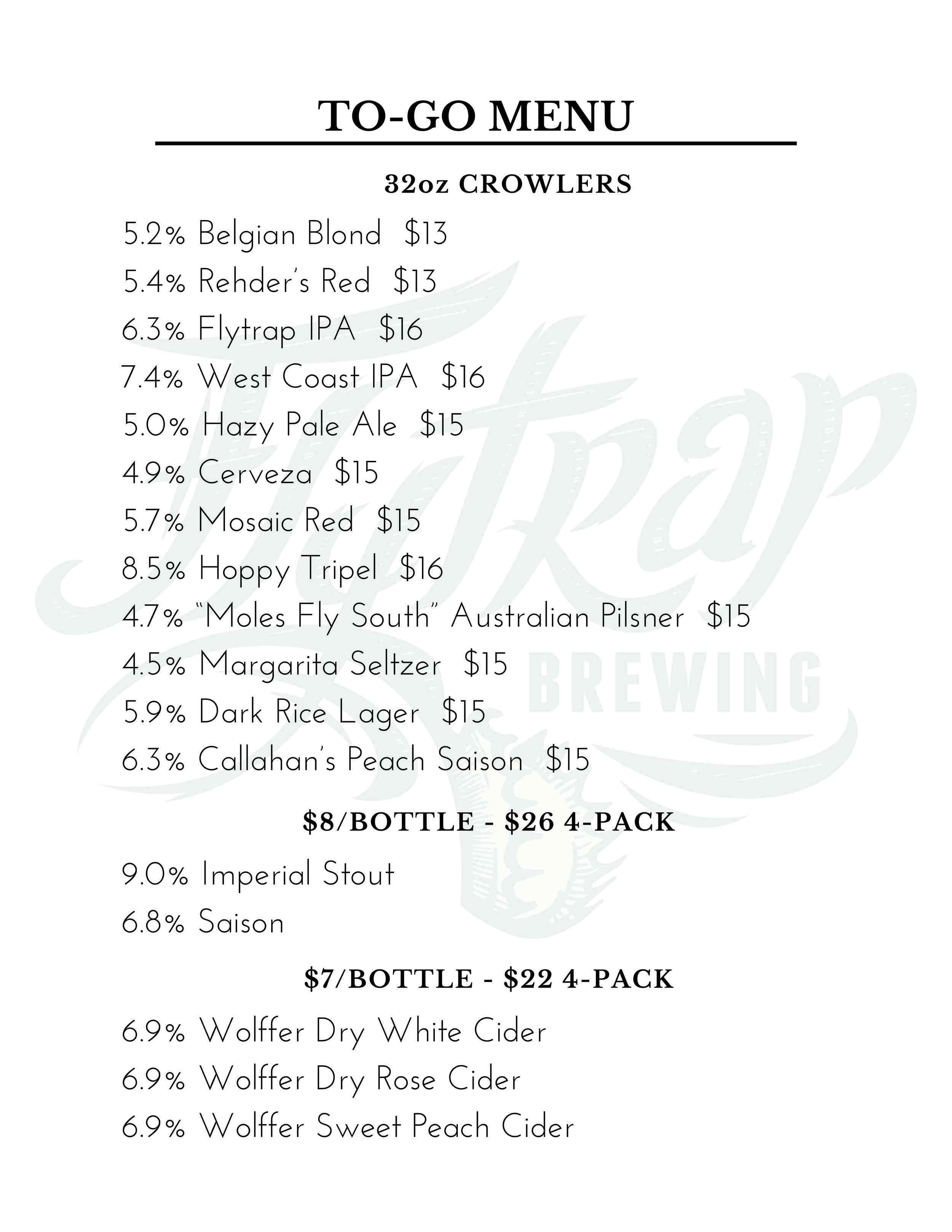For to-go orders, call 910.769.2881.